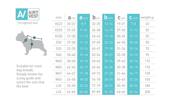 Vest is the world's lightest dog jacket: weight from 45g (small size) to 200g (large sizes). It combines unique style and functionality. The two-sided design gives you an additional benefit - you can get two jackets in one. It is an excellent solution for the outdoor activities. AiryVest is a multi-seasonal clothing, suited for cold spring, chilly autumn and winter.