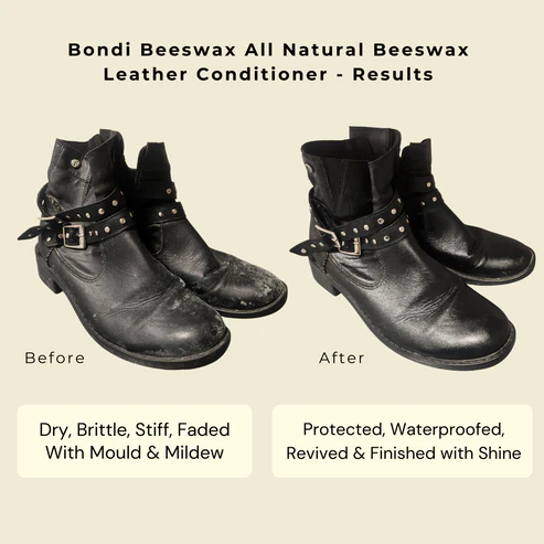 - Waterproofs, Softens, Revives Leather, Re-waxes Stitching & Prevents Cracking