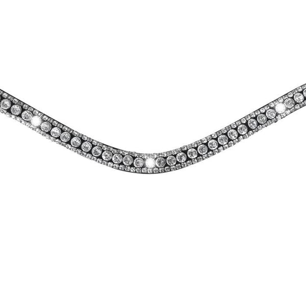 The high-shine black patent noseband is nicely padded and compliments the delicate crystal wave browband.