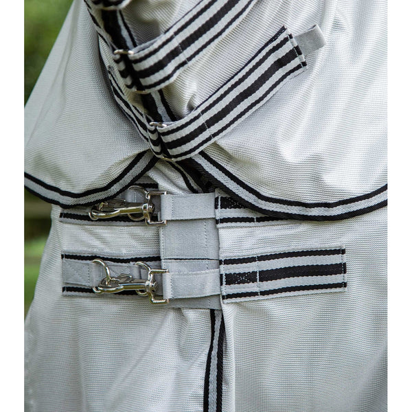 A highly protective fly and bug rug deigned from an innovative Interlocking mesh. The soft formation is likened to armour link chain which allows the fabric to move in conjunction with the body. The locking formation provides a channel which allows the dispersion of heat and an influx of air to help with cooling and thermoregulation helping to prevent heat build-up in warm weather and aiding the wellbeing of your horse.