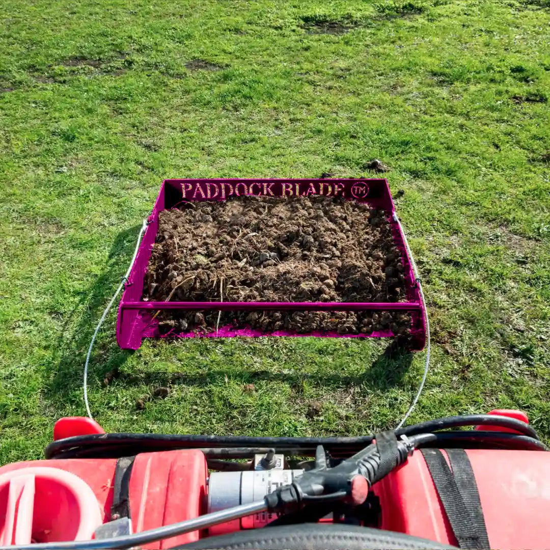 Paddock Blade is a solid reliable quick horse manure collector that makes paddock pasture cleaning easy.
