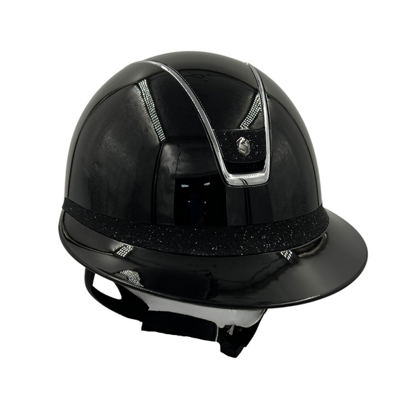 *Matt outer with Flower Embroidery top and front band, chrome trim and silver crystal fabric blazon
