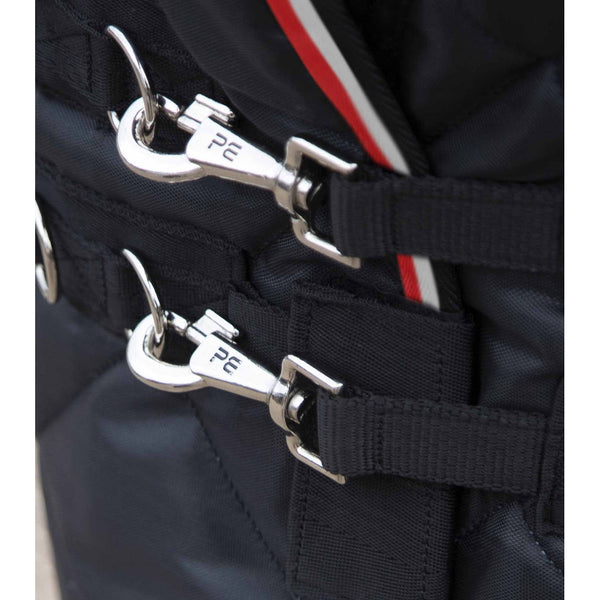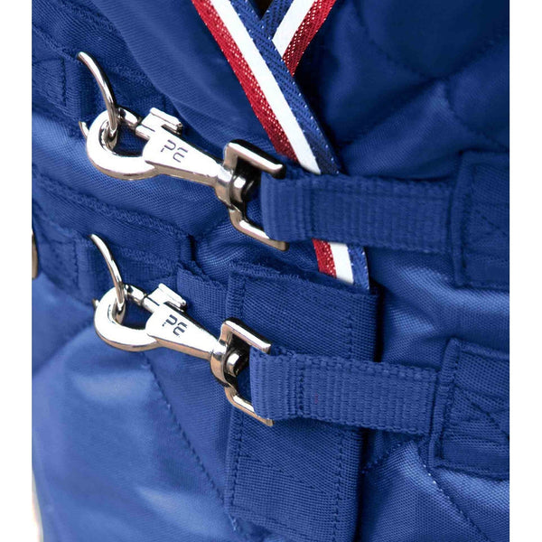 A high quality stable rug that provides excellent protection has been crafted in a breathable 420D ripstop polyester which acts as a barrier to your horse's coat to repel dust, dirt and stains. The 100g technical thermo bonded fill helps to regulate your horse's temperature, delivering comfort, protection and warmth when needed. The quilting of the fabric layers gives this rug a cosy aesthetic and the anti-static polyester lining helps to prevent rubbing and is comfortable against your horse's skin. Complete with quick release chest clips and cross surcingles, this stable rug is a must-have for milder months.